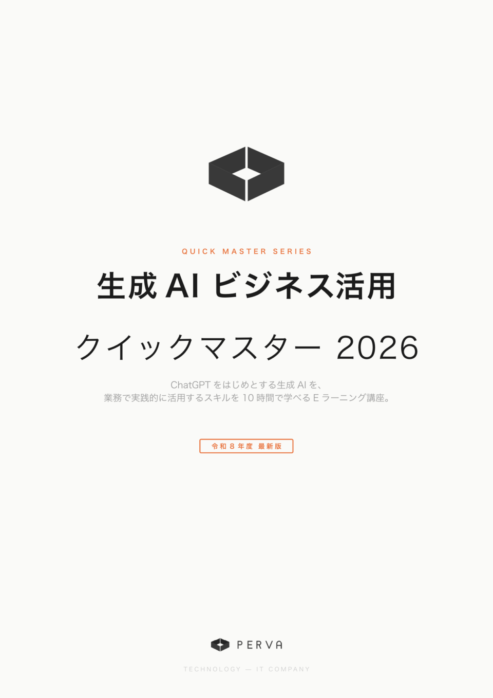 弊社「PERVA TECHNOLOGY」にて、DX人材の内製化支援サービスの一環として、ChatGPTをはじめとする生成AIのビジネス活用スキルを10時間で学べるオンライン研修 『生成AI ビジネス活用 クイックマスター 2026』の提供を開始いたしました。